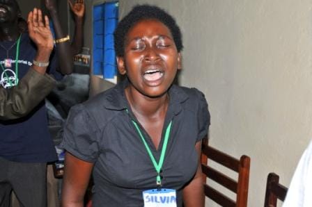 The Principal of of Yei Girls Secondary School receiving the overall Trophy.